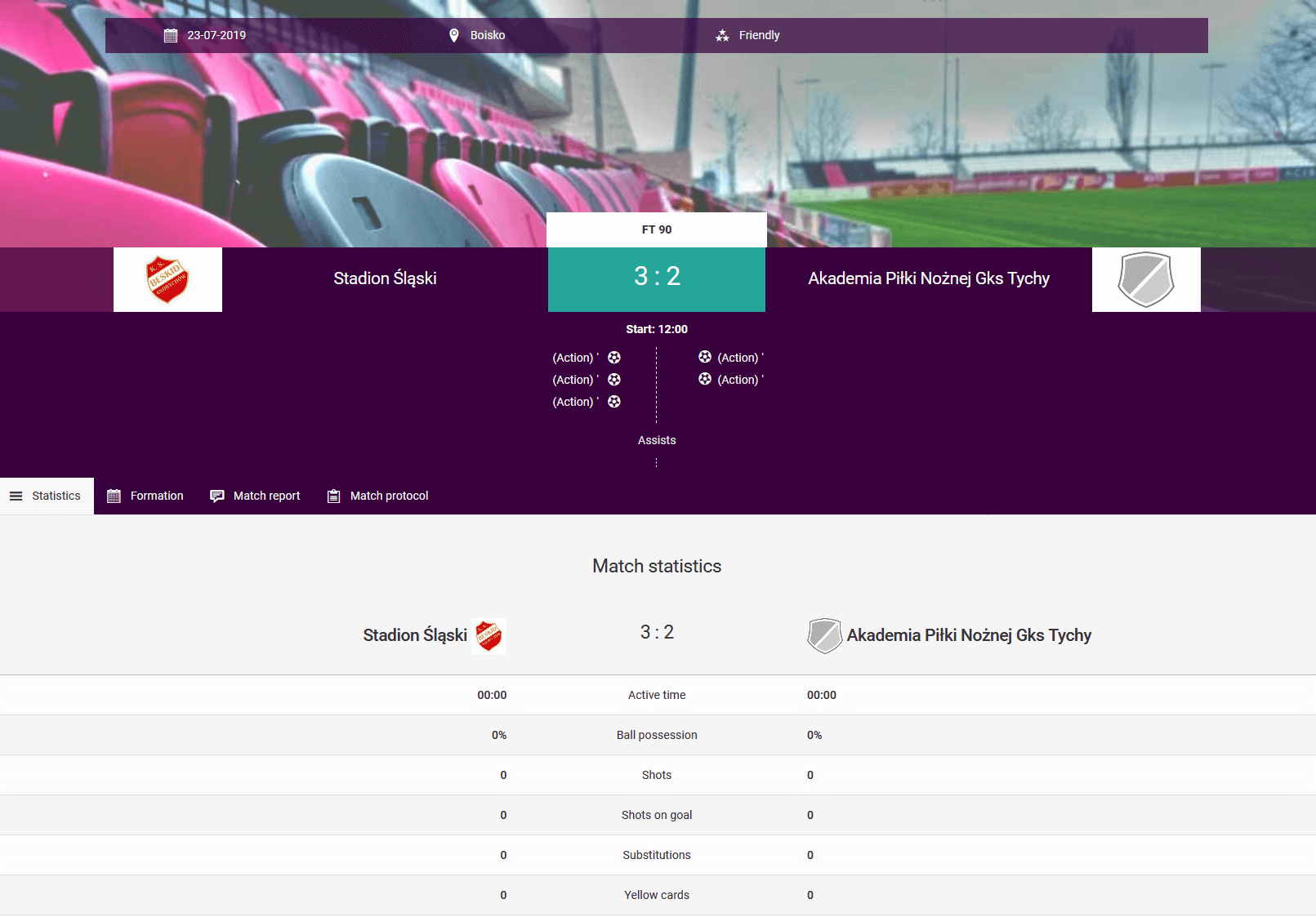 Αυτή η λειτουργία είναι πολύ χρήσιμη για την ολοκλήρωση των αποτελεσμάτων των αγώνων με πολλά γκολ ή σε αθλήματα όπου έχουν σημειωθεί πολλοί πόντοι. Προκειμένου να αποφευχθεί η ολοκλήρωση εξαιρετικά μεγάλων πρωτοκόλλων αγώνα όπως πχ με αποτέλεσμα 22-3 και αντικαταστάσεων, αξίζει να συμπληρώσετε μεμονωμένα τα στατιστικά στοιχεία των παικτών. Για να πάτε εκεί, μεταβείτε στο πρόγραμμα και επιλέξτε "Στατιστικά των παικτών στον αγώνα" από το μενού του αγώνα.