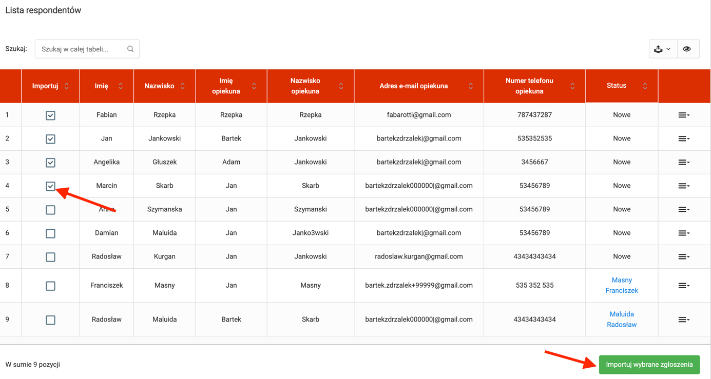 To do that, select the respondent’s checkbox on the left of the table to add them to a selected team as new system users.